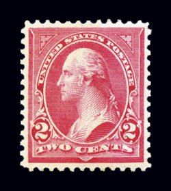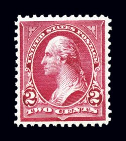 363 og 279Bc image#279Bc, 2c Rose carmine, Ty. III, an incredibly choice mint example of this rare and often misidentified stamp, featuring gorgeous unmistakable color that is infused with the bluish hue necessary to be positively identified as the rare shade, sharp detailed impression, incredibly well centered and margined, particularly when compared to the existing population, o.g., barest trace of hinging, extremely fine; the Scott catalog value does not accurately reflect the rarity or true market value of a copy in such premium condition; 2003 PF certificate. (Image) $250.00