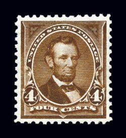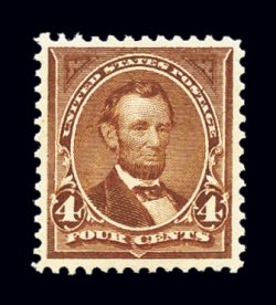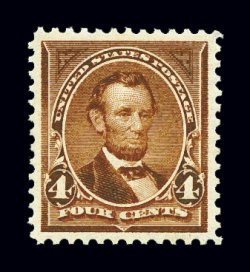 368 nh 280b image#280b, 4c Orange brown, a flawless mint single, with mathematically precise centering amid extraordinarily large margins, rich luxuriant color, o.g., n.h., a superb gem for the perfectionist; thus far this is the only example of Scott #280b graded "Superb 98" by the PSE; 1999 PF certificate and a 2005 PSE certificate (Superb 98); ex-Jarrett. (Image) $75.00