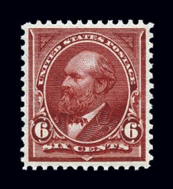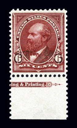 372 nh 282 image #282, 6c Lake, choice mint bottom sheet-margin partial imprint single, possessing outstanding centering within large margins, plus its color is especially deep and luxuriant, crisp detailed impression on bright paper, o.g., n.h., extremely fine; a remarkably choice and desirable example; 1991 PF certificate and a 2005 PSE certificate (VF-XF 85; undergraded in our opinion); ex-Billington, Jarrett. (Image) $120.00