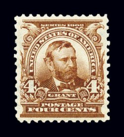 424 nh 303 image#303, 4c Brown, extraordinarily well centered with large and well balanced margins, rich luxuriant color and a crisp impression, o.g., n.h., extremely fine; 2003 PSE certificate. (Image) $140.00