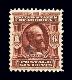427 nh 305 image#305, 6c Claret, outstanding mint single, perfectly centered within unusually large margins, strikingly intense color and a crisp detailed impression on immaculate paper, pristine o.g., n.h., an extremely fine gem for the most fastidious collector. (Image) $170.00
