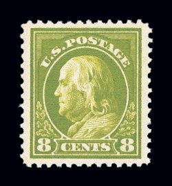 547 nh 414 image#414, 8c Pale olive green, select mint single, featuring precise centering within perfectly balanced and extra-large margins, gorgeous intense color and impression, immaculate o.g., n.h., extremely fine gem; 2001 PF certificate. (Image) $100.00