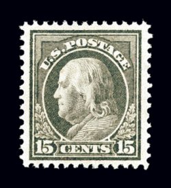 553 nh 418 image#418, 15c Gray, gem mint example, possessing extraordinarily precise centering within large margins, plus its color and impression are far more intense than usual on immaculate paper, fresh o.g., n.h., an extremely fine and very pretty stamp; 2001 PF certificate. (Image) $190.00