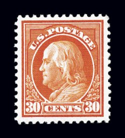 557 nh 420 image#420, 30c Orange red, an incredibly choice mint example, possessing a wonderful overall freshness, prooflike color and impression on bright paper, outstanding centering as well, with uncharacteristically large margins all around, flawless o.g., n.h., extremely fine; a pristine gem; 1999 PF certificate. (Image) $260.00