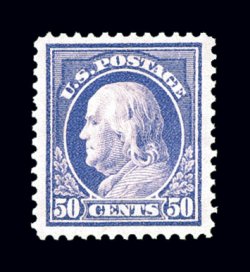 558 og 421 image#421, 50c Violet, single line watermark, near perfect centering, sumptuously rich color, o.g., barest trace of hinging (if at all), trivial corner crease at top left not mentioned on accompanying certificate, otherwise extremely fine; clear 1980 PF certificate. (Image) $425.00