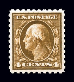 562 nh 427 image#427, 4c Brown, beautiful mint single, marvelously well centered, unusually wide margins, deep luxuriant color and a intense impression on bright paper, o.g., n.h., extremely fine gem; 2003 PSE certificate (XF-Superb 95) (Image) $75.00