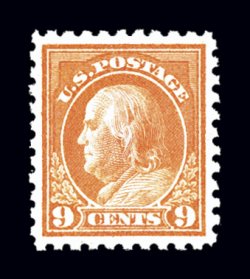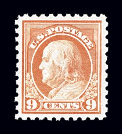 567 nh 432 image#432, 9c Salmon red, remarkably well centered within extra-large margins, bright vibrant color on fresh paper, even and intact perforations all around, pristine o.g., n.h., extremely fine; seldom encountered in this gem never hinged condition; 2003 PSE certificate. (Image) $105.00
