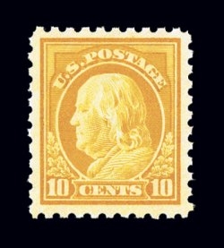 570 nh 433 image#433, 10c Orange yellow, select mint example, possessing a marvelous overall freshness, with radiant color and a strong impression on crisp paper, precisely centered within large margins, immaculate o.g., n.h., extremely fine; a stamp for the most demanding condition conscious collector; 1999 PF certificate. (Image) $100.00