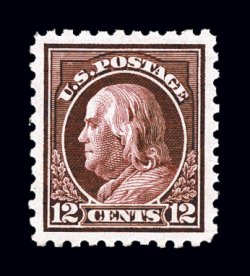 571 nh 435 image#435, 12c Claret brown, incredibly well centered with exceptionally large margins, deep luxuriant color, flawless o.g., n.h., extremely fine; a pristine gem; 1984 PF certificate. (Image) $62.50