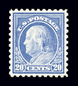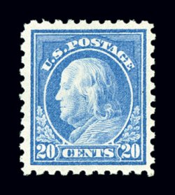 574 nh 438 image#438, 20c Ultramarine, brilliantly fresh and choice mint example, deep rich color and impression, particularly well centered, unblemished o.g., n.h., extremely fine; 2003 PSE certificate (XF 90). (Image) $475.00