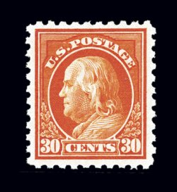 577 nh 439 image#439, 30c Orange red, brilliant "post office" fresh mint single, radiant color and a crisp detailed impression on immaculate paper, plus well centered with large margins, unblemished o.g., n.h., extremely fine; 2003 PF certificate. (Image) $575.00