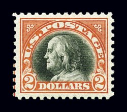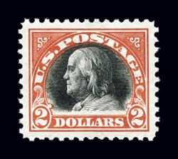 667 nh 523 image#523, $2.00 Orange red and black, premium quality mint example of this scarce stamp, wonderfully fresh overall, with bright vibrant colors on immaculate paper, exceedingly well centered within large margins, unblemished o.g., without any of the usual gum bends or skips, n.h., extremely fine gem. (Image) $1,300.00
