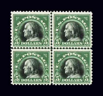 672 ogbl 524 image#524, $5.00 Deep green and black, center line block of four, rich bright colors, attractively centered, o.g., lightly hinged, very fine. (Image) $1,100.00