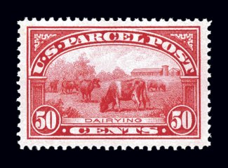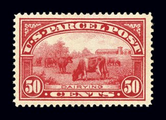 862 nh Q10 image#Q10, 50c Parcel Post, deep "fiery" color, strong detailed impression, well centered within exceptionally large margins, o.g., n.h., extremely fine. (Image) $700.00