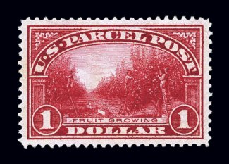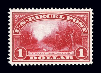 867 nh Q12 image#Q12, $1.00 Parcel Post, premium mint example, possessing a marvelous overall brilliance, with radiant color and a deeply etched impression, large well balanced margins all around, immaculate o.g., n.h., an extremely fine gem; 2000 PF certificate and a 2005 PSE certificate (XF 90); ex-Jarrett. (Image) $850.00