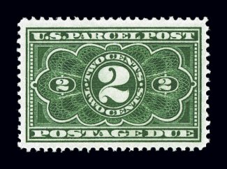 868 nh JQ2 image#JQ2, 2c Parcel Post Postage Due, pristine mint example, lovely rich color and a razor-sharp impression on immaculate paper, exceptionally well centered, o.g., n.h., extremely fine; actually quite difficult to find so choice; 1987 PF certificate. (Image) $210.00