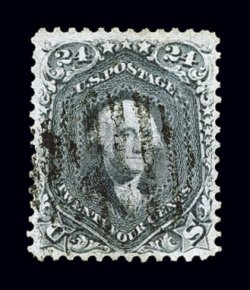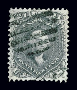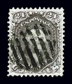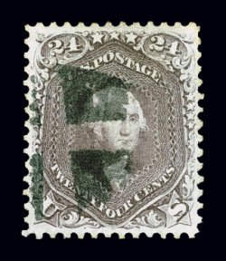127 O 70d image#70d, 24c Pale gray violet on thin paper, a superb used example, being in a quality that is almost unheard of on this difficult and rare stamp, flawlessly centered within very large margins for any 1861-62 24c, let alone this elusive shade, wonderfully fresh and strong color, with a crisp detailed impression on bright paper, beautifully cancelled with a light and unobtrusive strike of a rimless grid, extremely fine; a true used gem for the collector who seeks out stamps in only the finest attainable quality; 1998 PF certificate; ex-McCree, "Ganymede". (Image) $2,000.00