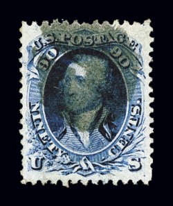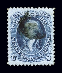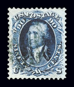 130 O 72 image#72, 90c Blue, a magnificent used example of this high value, possessing several desirable physical characteristics, including being perfectly centered within lavishly large margins, in addition it has particularly strong deep color and a highly detailed impression, an unusually light postmark further contributes to this stamp's great eye appeal, an extremely fine gem in every regard; 2001 PF certificate; ex-"Ganymede". (Image) $475.00
