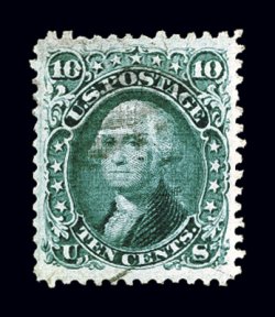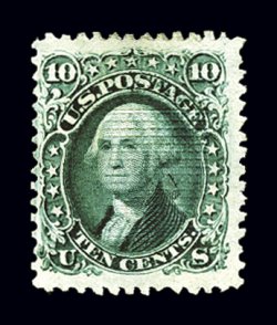 163 og 89 image#89, 10c Green, "E" grill, a magnificently fresh and bright example of a stamp that is missing in even the most advanced collections of mint United States stamps, possessing strikingly intense color in a deep shade, plus its impression is razor sharp on bright crisp paper, quite well centered amid uncharacteristically large margins, even its reverse is uncommonly choice, featuring especially clean full o.g. that has been only very lightly hinged, very fine; 1997 PF certificate; ex-McKinney. (Image) $5,500.00