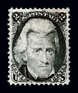 171 O 93 image#93, 2c Black, "F" grill, remarkable used example, being incredibly well centered and lavishly large margined for this notoriously difficult stamp, plus its color and impression are uncommonly bright, an especially light and unobtrusive cancel completes this stamp's gem characteristics, extremely fine; 1991 PF certificate; ex-"Ganymede". (Image) $55.00
