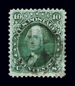 165 O 89 image#89, 10c Green, "E" grill, extraordinarily choice used single, with uncharacteristically large margins all around, virtually perfectly centered within these balanced borders, deep rich color, neat segmented cut-cork cancel, extremely fine; a pretty stamp that is rarely encountered this well centered; 1996 PSE certificate. (Image) $325.00
