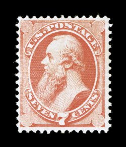 certificate.#149, 7c Vermilion, quite well centered within uncommonly large margins, strong color and impression, o.g., lightly hinged, very fine and choice; 2000 PF certificate. (Image) $1,300.00