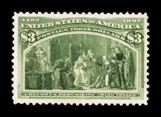 347 og 243 243, $3.00 Columbian, an incredibly fresh and bright mint example, with radiant yellow green color and a crisp clean impression, wonderfully well centered, unusually even
