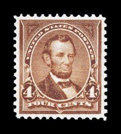 90 SMQ $340.00).#280, 4c Rose brown, exceedingly well centered within very large margins, strong rich color, o.g. n.h., extremely fine and choice; 2000 and 2007 PF certificates (latter grading XF 90; SMQ $340.00). (Image) $90.00