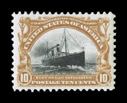 $870.00).#299, 10c Pan-American, exceptionally well centered within wide margins, rich colors, pristine o.g., n.h., extremely fine; 2007 PSE certificate (XF 90; SMQ $870.00). (Image) $375.00