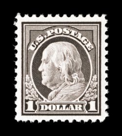 $310.00).#518, $1.00 Violet brown, exceptionally well centered within large margins, strong color and impression, o.g., n.h., extremely fine; 2007 PSE certificate (XF 90; SMQ $310.00). (Image) $120.00