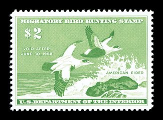 95 SMQ $200.00).#RW24, 1957 $2.00 Emerald, exceedingly well centered within particularly large margins, marvelously bright and fresh, o.g., n.h., extremely fine; 2007 PSE certificate (XF-Superb 95; SMQ $200.00). (Image) $85.00