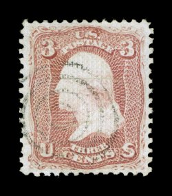 very fine 1992 PF certificate.#79, 3c Rose, "A" grill, used, excellent perforations that are much more intact than normally encountered on this "A" grill, marvelously fresh color as well, nicely centered, choice very fine; 1992 PF certificate. (Image) $1,500.00