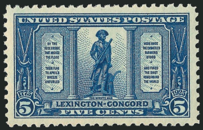864 nh Image1c-5c Lexington-Concord (617-619). Mint N.H. set with extra 2c value, each with wide margins and perfect centering, fresh colors, Extremely Fine Gems, three with P.S.E. certificates (Superb 98, total SMQ $655.00), extra 2c with 2009 P.S.A.G. certificate (Superb 98) (Image)