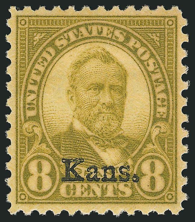 869 nh Image1c-10c Kans. Overprints (658-668). Mint N.H. except 5c lightly hinged, rich colors, better centering than normally seen in a group lot, fresh and Very Fine-Extremely Fine set, four with certificates (Image)