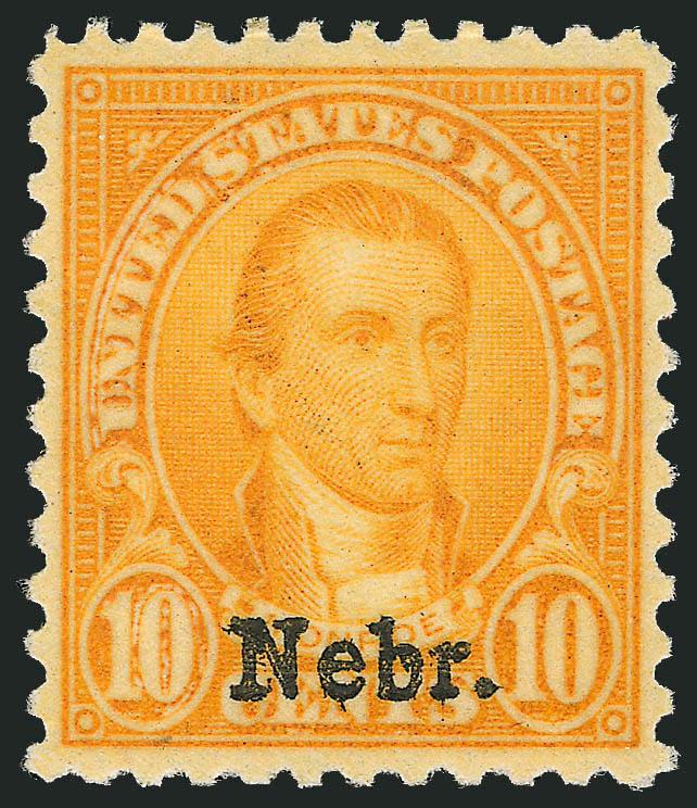 871 nh Image1c-10c Nebr. Overprints (669-679). Mint N.H., bright colors, choice centering throughout, Very Fine-Extremely Fine, three with certificates (Image)