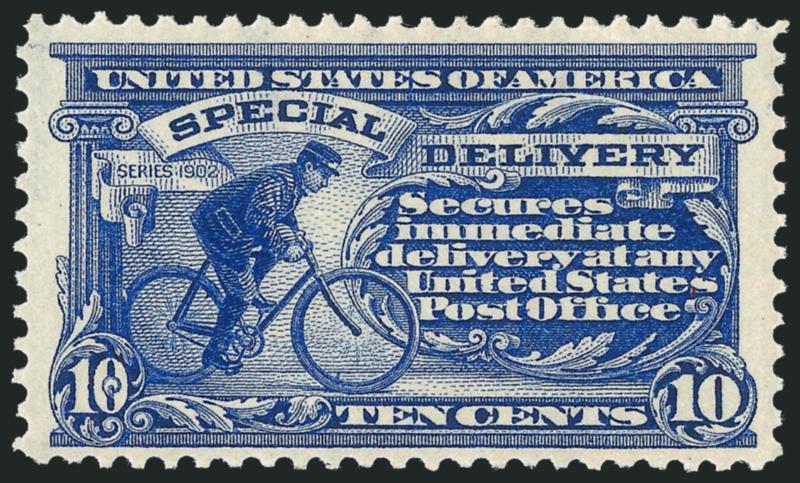 910 nh Image10c Ultramarine, Special Delivery (E6). Mint N.H., very attractively centered with pretty color, Very Fine and choice, with 2009 P.S.E. certificate (VF-XF 85, SMQ $850.00) (Image)