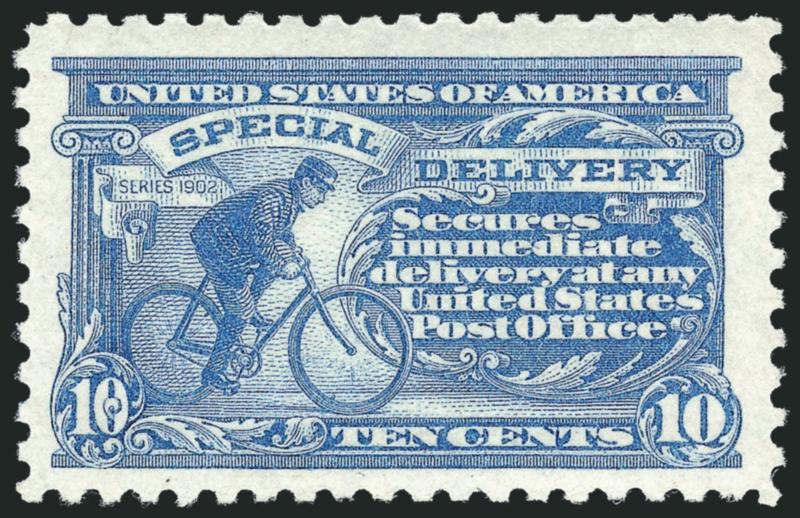 914 nh Image10c Pale Ultramarine, Special Delivery (E10). Mint N.H., huge margins, pretty pastel color, Very Fine and choice, with 1995 P.F. certificate (Image)