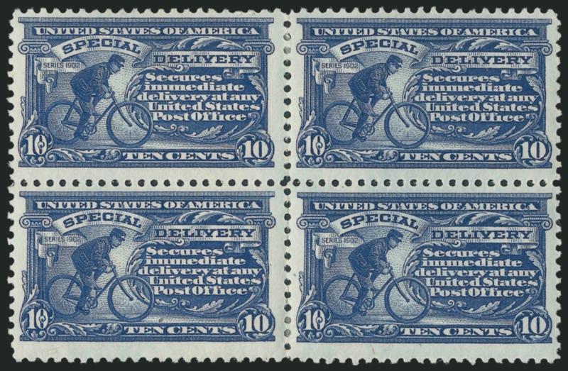 915 ogbl Image10c Ultramarine, "Pink Back" Variety, Special Delivery (E11 var). Block of four and single, fresh color, attractive margins, Very Fine, footnote in Scott Catalogue states that the "Pink Backs" are valued at approx. 5x the normal stamps (Image)