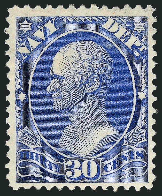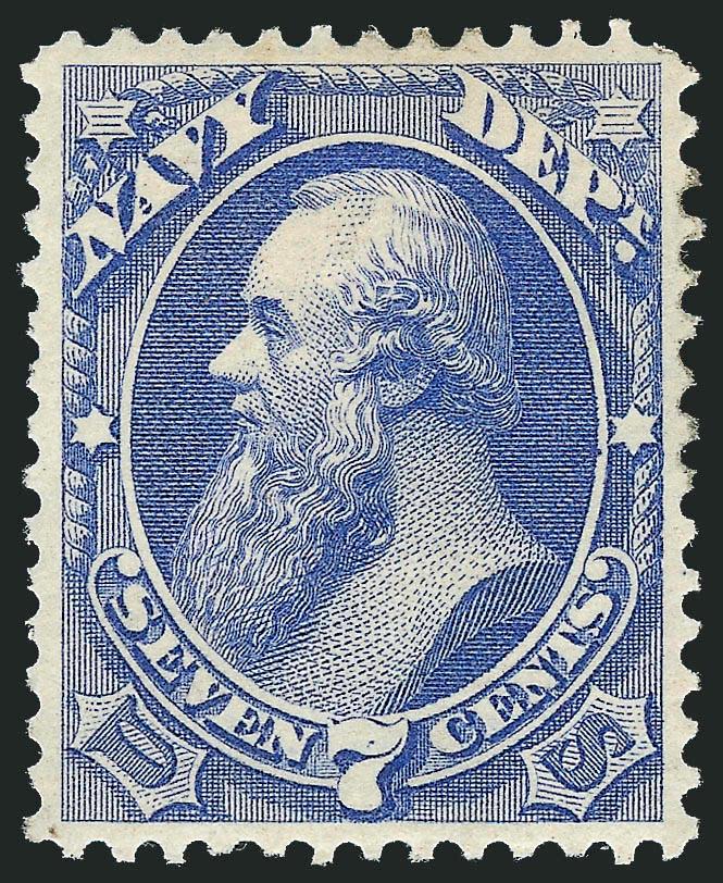 964   Image6c Dull Blue, Navy (O38a).Beautiful centering with Jumbo margins, brilliant color on crisp paper, neat cork cancel, Extremely Fine Gem, with 2011 P.S.E. certificate (XF 90 Jumbo, SMQ $65.00 as 90, $130.00 as 95), SMQ has just started pricing used Officials and their values are low in our opinion (Image)