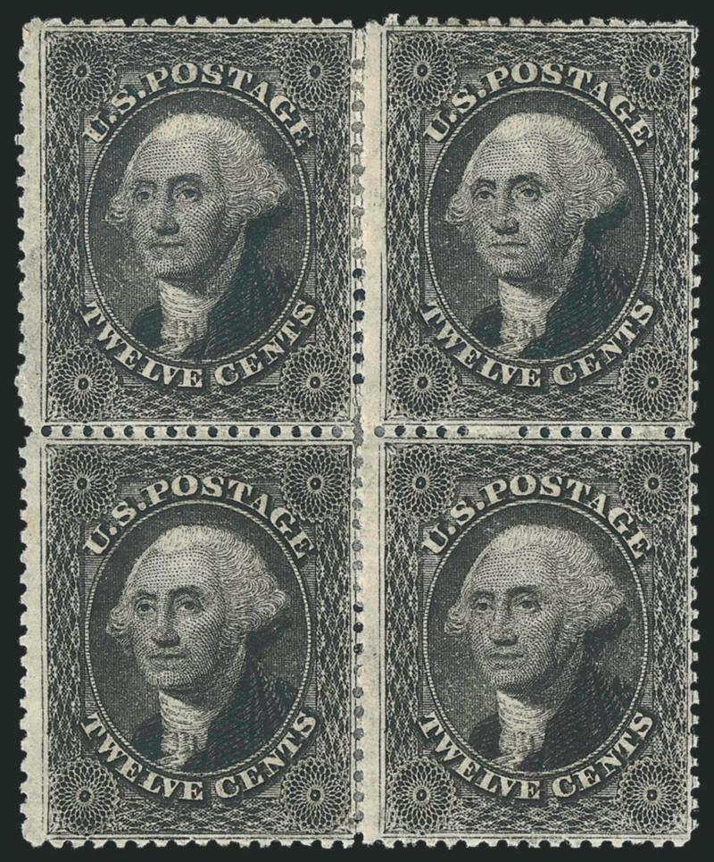 133 ogbl Image12c Black, Plate 3 (36B). Block of four, original gum, h.r. where some perf separations sensibly reinforced, Fine, a scarce original-gum block (Image)