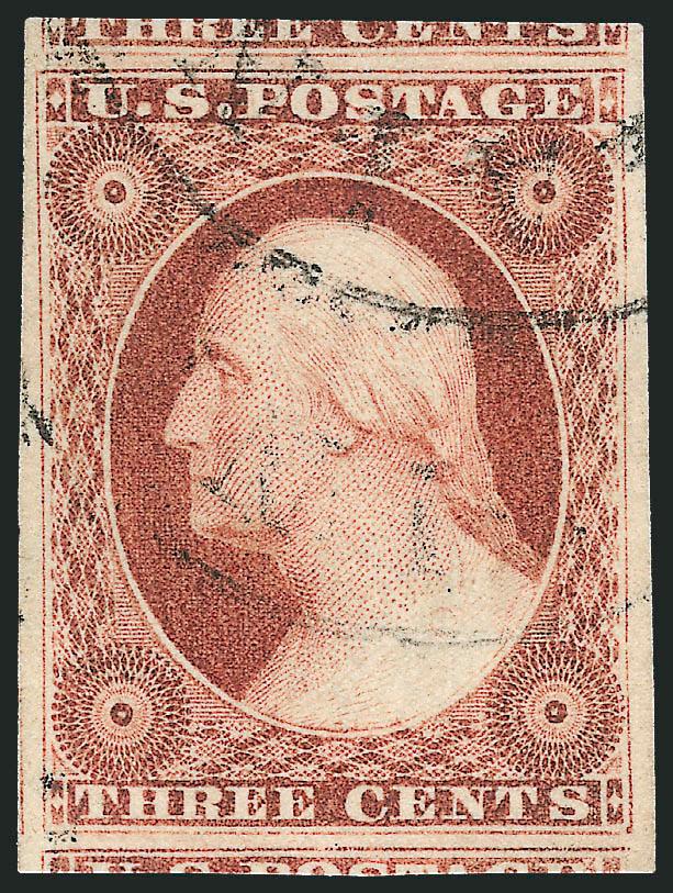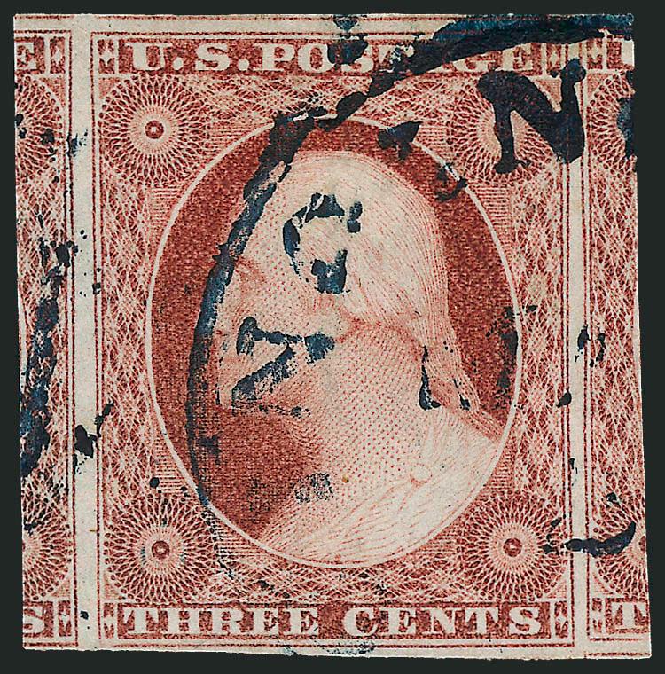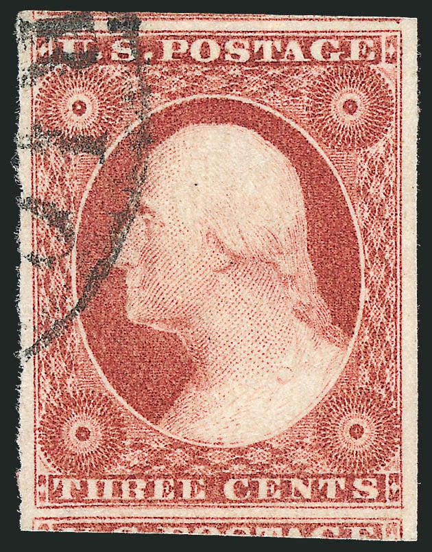 3c 1851-56, Brownish Carmine (Scott 11-11A)