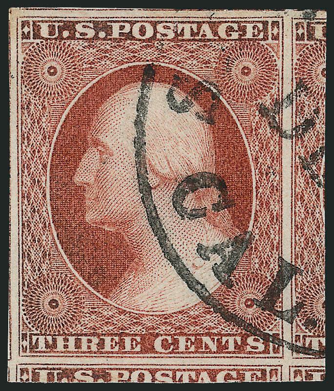 259   Image3c Brownish Carmine, Ty. II (11A). Large margins all around including traces or portions of three adjoining stamps, rich color, neat town cancel, Extremely Fine (Image)