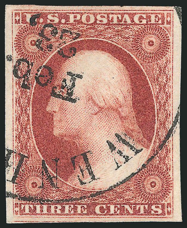 258   Image3c Brownish Carmine, Ty. I (11). Beautiful large even margins, deep rich color, neat strike of town datestamp, Extremely Fine Gem, a gorgeous stamp (Image)