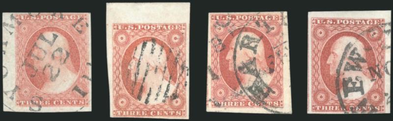3c 1851-56, Dull Red, Corner Margin Copies, Cont. (Scott 11-11A) continued...