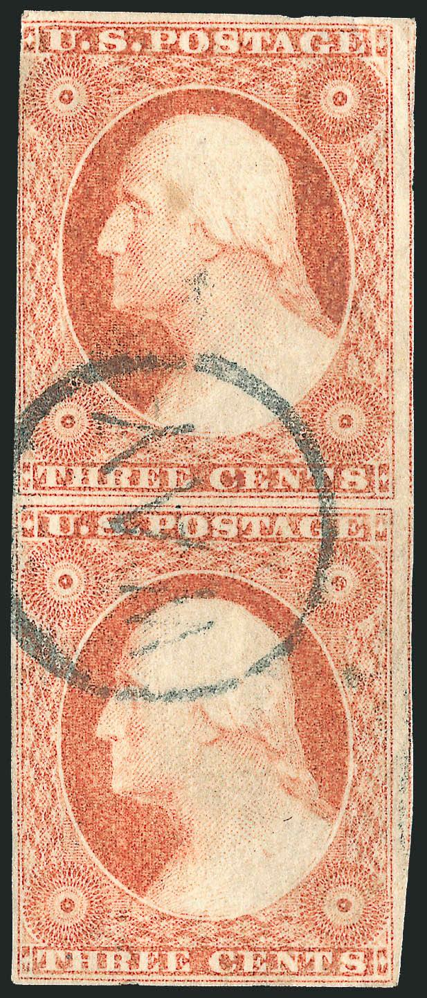 416   Image3c Dull Red, Ty. I (11). Positions 28/38R3, vertical pair, large margins to just touching, clear strike of "Way" in circle handstamp, light corner creases, otherwise Fine, attractive with this marking (Image)