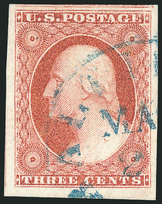451   Image3c Claret, Ty. I (11). Large margins including bottom sheet margin, gorgeous color complemented by blue circular datestamp, fresh and Extremely Fine Gem (Image)