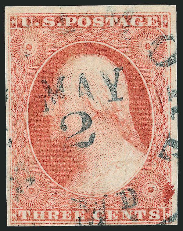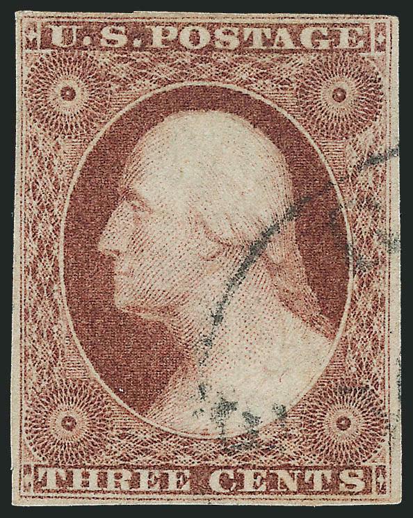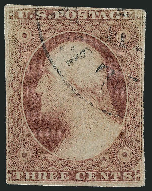 Ex Wagshal. with 2011 P.F. certificate and accompanied by a 2011 note from 3c color expert William Amonette stating "Superb example of the rare Plum shade. This stamp matches the Plum shade exactly in the Chase Master Color Chart." (Image)