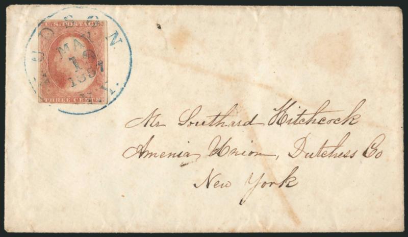 EXTREMELY FINE. A RARE SOUND FOUR-MARGIN EXAMPLE OF THE 3-CENT TYPE I 1851 ISSUE IN THE PINK COLOR. A GREAT RARITY OF THE ISSUE.