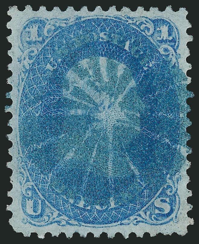 1c Blue (63). Radiant color on bright paper, beautiful centering with well-balanced margins, neat strike of blue circle of V's cancel, Extremely Fine, with 2010 P.S.E. certificate (Image)Search for comparables at SiegelAuctions.com |