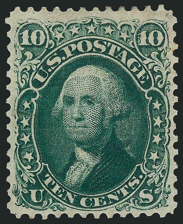 10c Dark Green (68a). Original gum, lightly hinged, deep rich color and proof-like impression on bright paper, insignificant scuff at top right corner, Very Fine appearing example of this